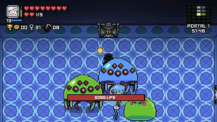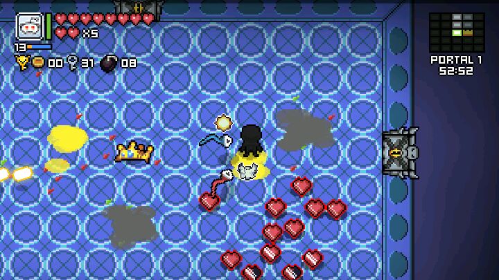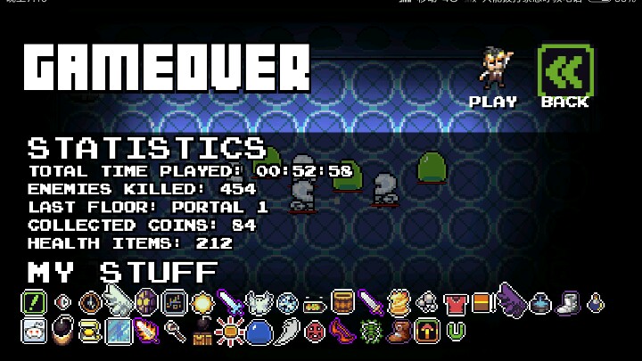 某日,新宇发现了这样的一款类似于以撒的小游戏,出于之无聊便下载了下来。不料,下载打开之后就停不下来了……游戏玩法:想必各位汇员一定知道有款游戏PC上的roguelike游戏《以撒的结合》,这款游戏就是采用这种机制的。。游戏一共三种模式:简单,困难和无尽简单和困难模式都是随机生成地形,每一层的出生点都有一个小洞口,是可以暂时存放主动道具的,此游戏的道具过多,下面我就讲一下经典常见的一些吧!加攻击力的果实是红色的。老鼠道具可以变小。闪光的红球是可以释放在身边召唤一只小球抵挡一次伤害。手枪是在上下左右四个方向射击,总之还有很多内容,喜欢的汇员可以自行探索。boss科普:绿色的史莱姆boss技能是会在一段时间冲刺过来造成伤害,总之就是在它没蓄力冲刺的时候抓紧打它。橙色的史莱姆boss打掉会召唤分身,本身是没有什么技能,是沿着一个轨道行动的,只要在角落的偷着打基本上就可以了。蓝色的史莱姆boss周围有一圈蓝色的盾,你必须站在盾里攻击它才会掉血,出了就打不动。闪光绿色史莱姆boss的技能是治疗自己,打法就是不要在它闪光的时候攻击它,否则伤害会被它吸收加血。史莱姆王boss是最大的一个boss,在很高层的时候每层都是它,他会每隔一段时间召唤出一个上述boss,他非常肉,其他还好,还有就是后期全部都是打这一个boss,所以光是这一点就已经输给了以撒!下面说一下特殊房间机制。boss房:这就不必多说了吧!在地图上可以看到有一个骷髅头的便是boss房。奖励房:有宝箱,可以触碰拿东西,我玩这游戏都是靠这个发家致富的!不过要小心,这个宝箱也可能是怪物,就是说触碰到扣血,然后瞬间变怪物,这里的话我每次进宝箱房都会打一下宝箱避免扣血,尤其是一层有两个宝箱房的情况下!抽奖房:这个房间在四个角有宝箱,随机抽,我人品差,所以都抽的是金币减99(上限也是99)所以不推荐抽奖。。商店房:游戏内打怪或探索可以获得金币,然后在这里剁手!吃金币的宝箱房:一个张开嘴的宝箱,站在它旁边,他就会吃你的金币,吃多了就会随机出个道具给你!总结:游戏本身很不错,上手难度也不是很大,不过玩久了就会感到乏味希望以后能改进,毕竟还是很喜欢这种类型的!所以各位喜欢的汇员就来玩玩吧(^_-)-☆打字很辛苦滴……求上墙!!!(热爱游戏,我叫邓新宇!)