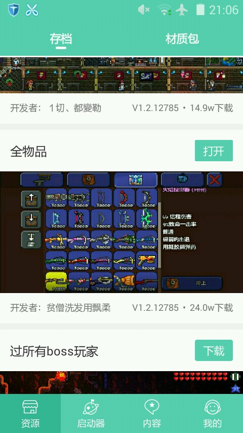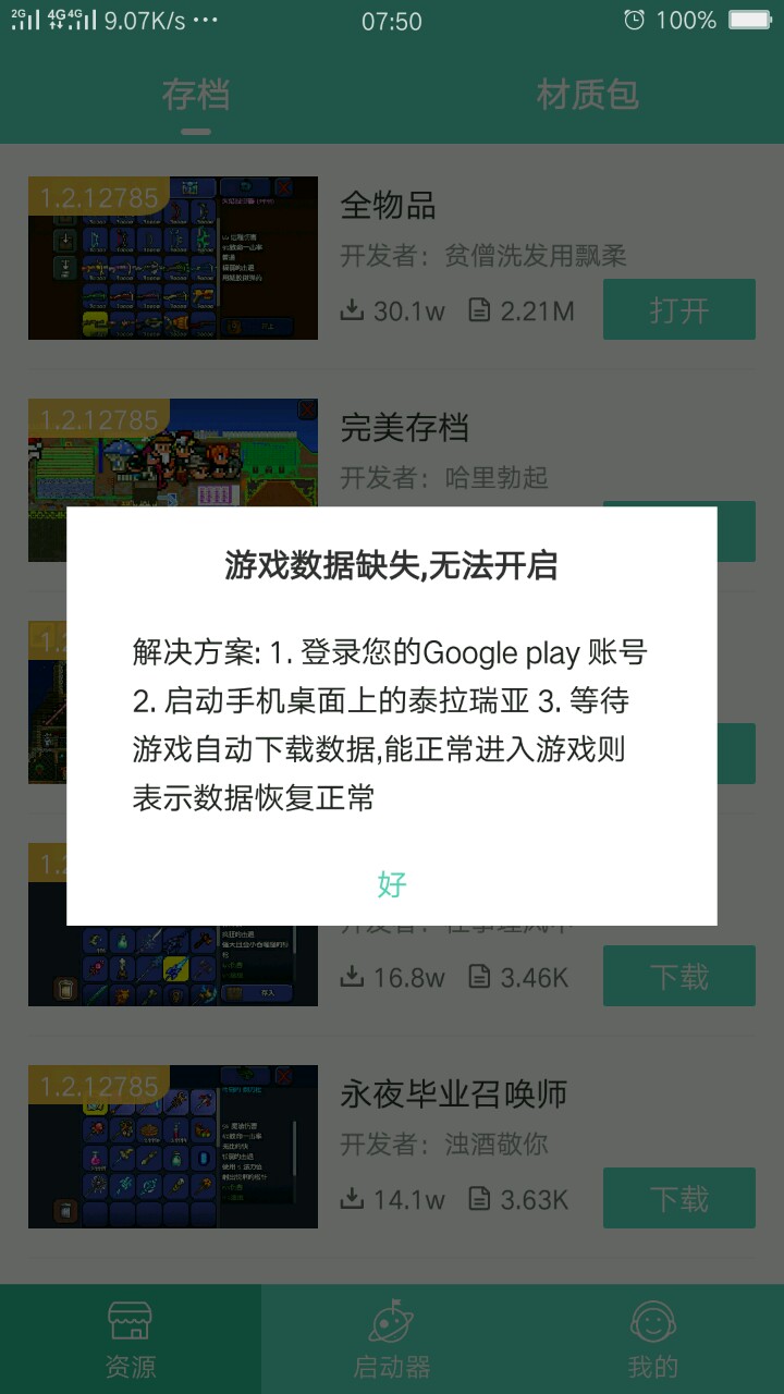 你不通过GG盒子,能直接打开泰拉瑞亚吗?泰拉瑞亚要下谷歌市场,而且刚开始的时候要点击第一个资源包,进去之后会重新加载过数据,它不会显示原来的数据也不会删除原来的数据,等确认好数据包后再返回点击加载别的存档和材质包,我用的是联想手机点进去后真的能玩,就是下载完后要关掉网再点进去就不会狂下东西了,我发截图给你