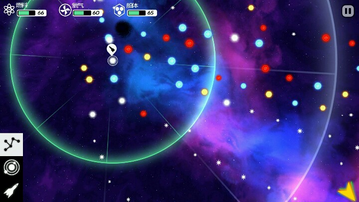 前期要点运气,不过科技不用急着拿,只要能活下来最后大部分都有,所以不能图快,一开始每个星球搜一次,优先燃料和铁。欧米茄元素是最后用来穿越虫洞和把岩石星球地球化的关键,能留着就留着吧…否则最后黄色目标可能就会因为隔的太远而去不了然后被迫去绿的目标拿无尽漂流结局。最开始那个飞船只能用氢和氦作能源,每次去采集都要耗飞船耐久。然后还有一个像热带鱼的飞船用的氢和氧。我这个球形飞船用氢和碳。氧和碳在有生命的星球上一挖一大把,对减少飞船耐久的损耗非常有帮助。