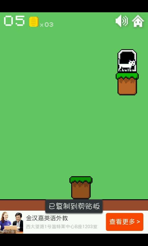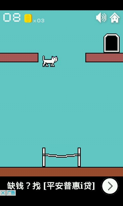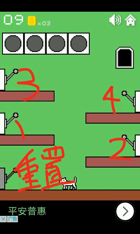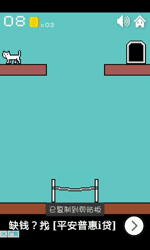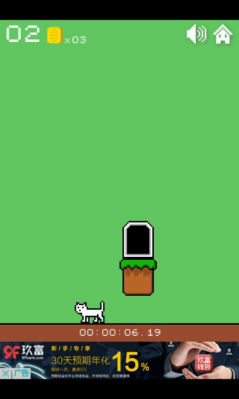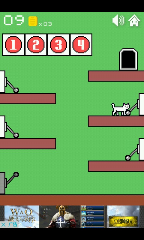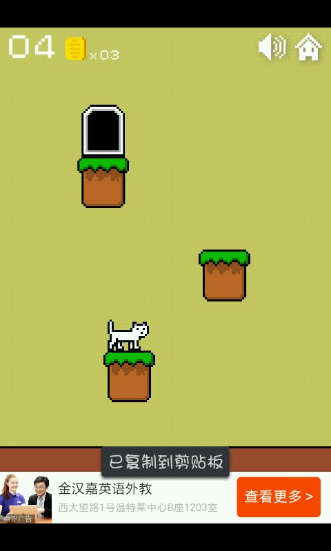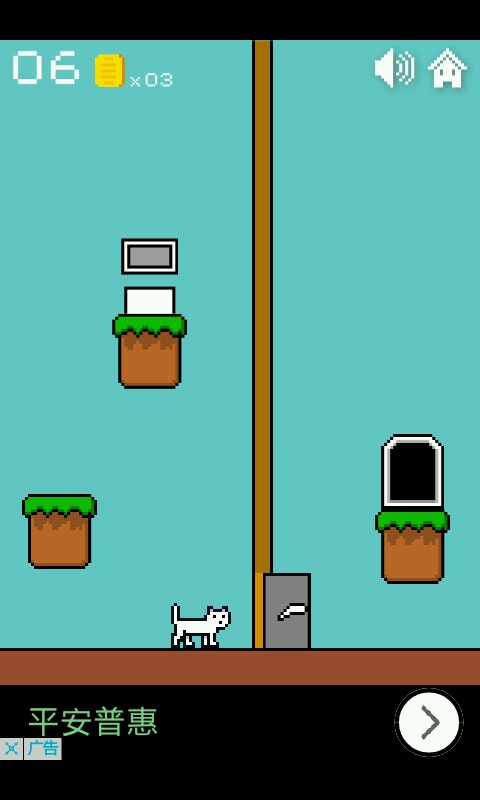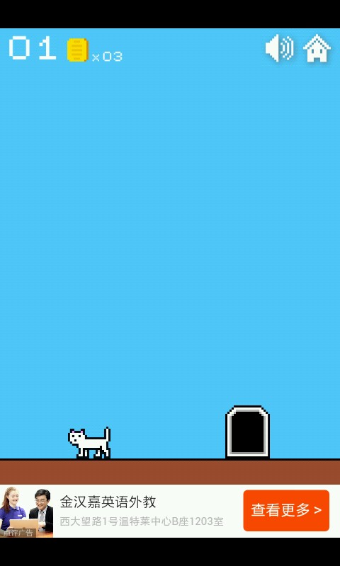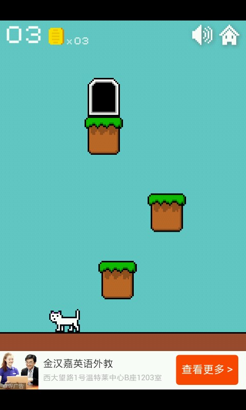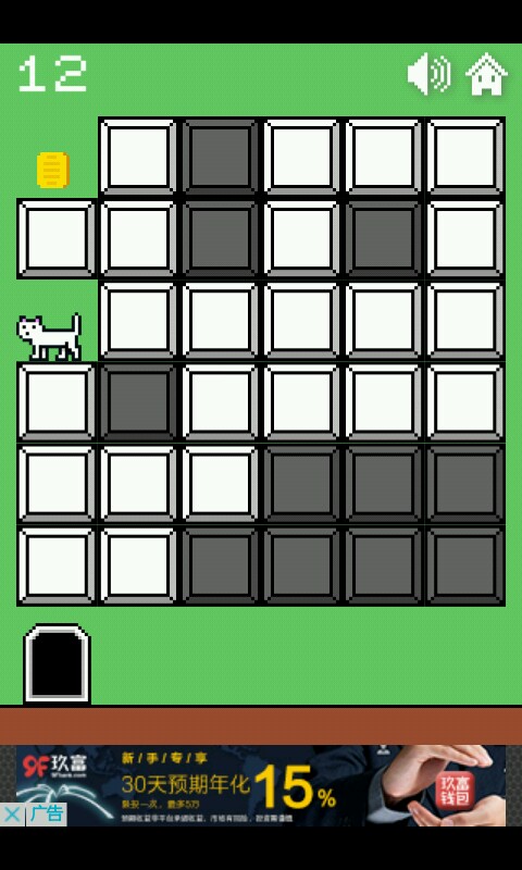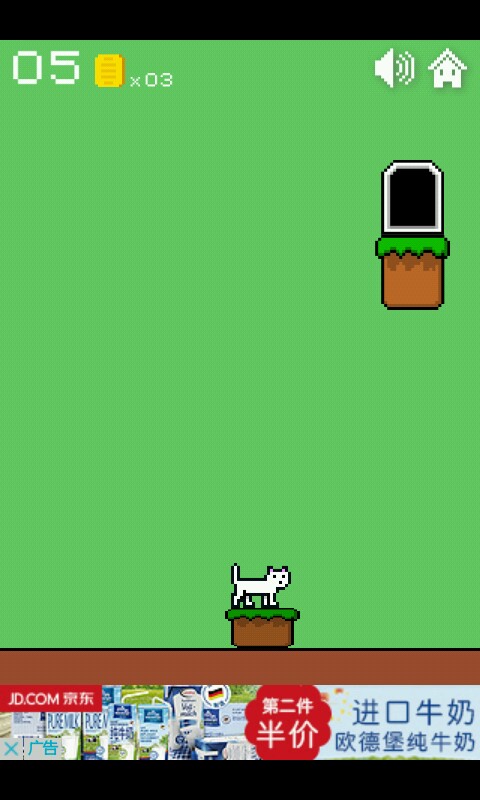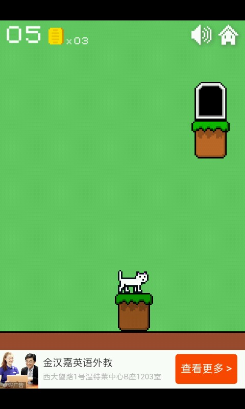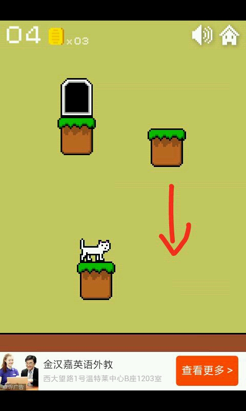 一二三关这个异常简单无需动脑的你们是知道的,点击方块使猫咪跳跃进入小门过关