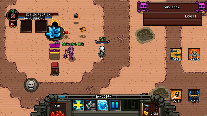 这游戏共有八大关卡,每个关卡分四个小关卡,有七种模式(最后的模式连普通怪都有上万血量),总的来说,这游戏有很多的随机性,使其可玩性相当的高,喜欢像素风格的朋友千万不要错过哦。
