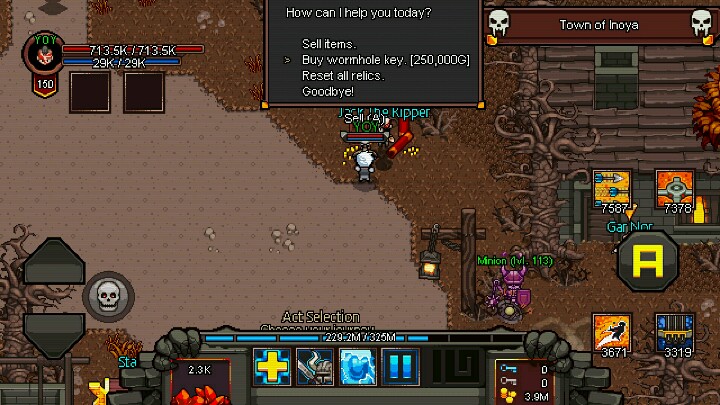 再有我说一下这游戏里的一些幸运的事,有时候刷图会遇上一个背着袋子的哥布林(哈哈哈,打劫!),干掉他,他会掉很多水晶给你。有一种怪他血条左右有黑色骷髅的(我去,一看就知道是大哥),宰了他,必掉橙、紫装(没记错的话,这种怪是叫远古怪)。有一种箱子是紫色的,刷图很少见的到,重要的是游戏里的好东西都有几率开到(我只开过水晶,神器,紫装),这种箱子能用3500水晶跟一个npc换(跟这npc对话,他话中有3500)。闯关卡时,每过一个小关卡都有可能出现一尊塑像,碰一下(神呐,请赐予我力量),然后要么帮你加属性,要么帮你减属性(总之,无论加减,挂了一次后又会变回来,药水也是如此)。