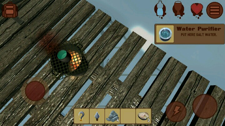 作为新手,分享下玩的过程:一开始用钩子捞物资。先多捞些草,造绳子,接着造把刀(可能是矛,很短),这样鲨鱼咬木筏时候,你攻击它,能把它打跑。然后造蒸海水那设备及装水容器(很容易缺水),还有烧烤炉,再造一块土豆地。修理工具(像锤头)必不可少,只要有木头,就可以把鲨鱼咬坏的地方修好。尝试多攻击鲨鱼,会得到鲨鱼肉,烤完吃了,解渴还解饿。斧头只能砍树,得木材和椰果,树要自己种。还有钓鱼,需要钩子和绳子,甩杆之后,水面有水花就提竿(晚提起来也没事),就能钓到鱼。一开始发育容易死,多死几回就会玩啦。其实挺容易的,后来多种些土豆就饿不着。唯一的挑战就是干鲨鱼,等鲨鱼来也挺无聊的。这游戏比较有创意,但是缺乏挑战性,不要以为打鲨鱼是件很刺激的事情,站在那,拿把刀来回捅,木有技术含量,不够刺激……