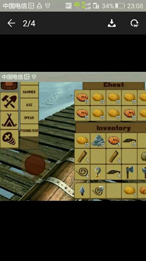 玩家可以煮水,烤土豆,烤鱼,烤鲨鱼肉(通过多次攻击鲨鱼获得),那网(net)可以把物资收集,木筏周围放几张网,物资就不用愁了。现在生活过得可滋润了,能吃上肉个人感觉这日子还比较奢侈,吼吼
