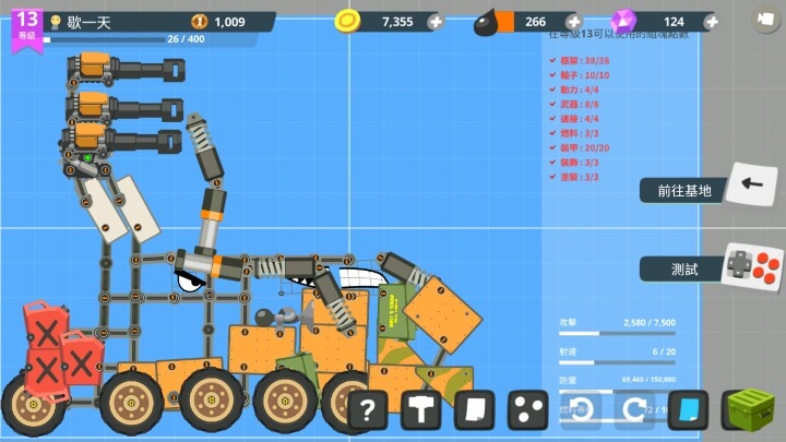 首先我要说作为一款拼装类游戏超坦已经做的很好了,武器防具避震控制以及坦克的基本骨架都要自己去构建。很考验玩家的想象力。游戏的战斗方式以及挂机系统很出色,在玩家离线的过程中会获得资源,且基地会被攻打,防御基地的时候坦克是ai操控的,也就是说,只要坦克硬实力足够高,离线时会通过击败别人的进攻获得很多rank分。rank分类似于段位指标,系统根据rank分匹配对手,而我们出击的时候遇见的并不是真人,而是ai控制的坦克。