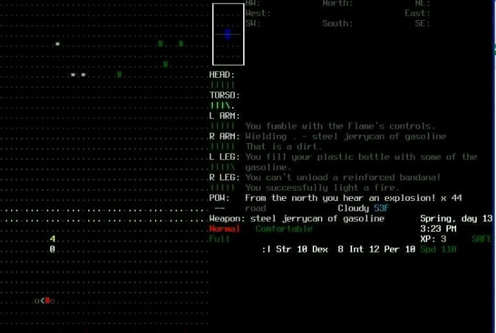 技能方面,为了最快做石铲出坑建议点一点生存,为了一开始就能做撬棍还需要加一点给机械,其他都没什么必要一开始加,毕竟读书练习都可以很快提高,一段时间不用还会降低,推荐智力为主,适当加几点力量和感知。(如果有高手试图挑战甚至可以完全不加初始技能,剩余点数都可以投到基本属性上去,毕竟跟技能不同,没办法练习提高,基本上初期只要灵活利用地形和小心引怪,就可以直接砸窗户扫荡民居武装自己,然后目标直指图书馆,靠着一开始拿到的钢管打出一条血路来。)