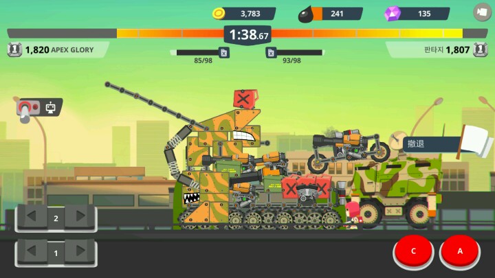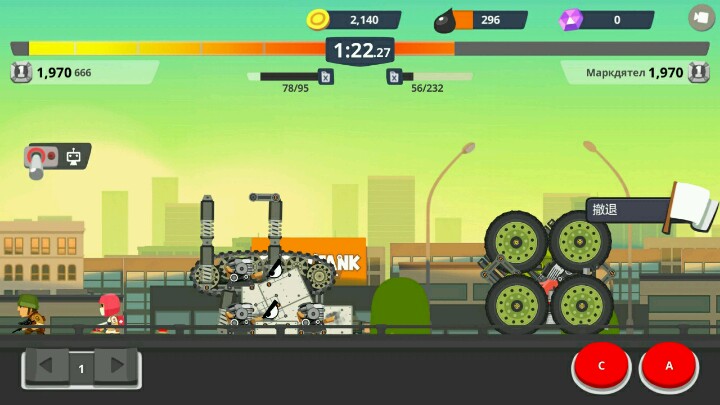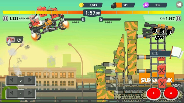 之前用图1的火箭喷火战车冲了一波2000,无脑开火箭喷火就行,发现2000分以上不是很好冲(结构太庞大,后置的炮塔火箭炮可以秒破前护甲),于是想造飞机(滑稽),实验几次后发现升空可行但是基本没有控制可言,于是转念一想,这里面的炮台基本只能转120°,如果飞到后面并成功着陆,就可以吊打所有对手,经过数次改进,终于造出了完美的敌后大炮战车(经测试,菊花防火,喷火枪无效!),开战后,只需要按住火箭按钮,就可以撞击天花板后滚落到对手身后,然后就可以快乐的射(bao)击(菊)了!最后还测试了一波战役,轻松通关,绕到boss身后ai直接懵逼停在前面,几炮轰杀!