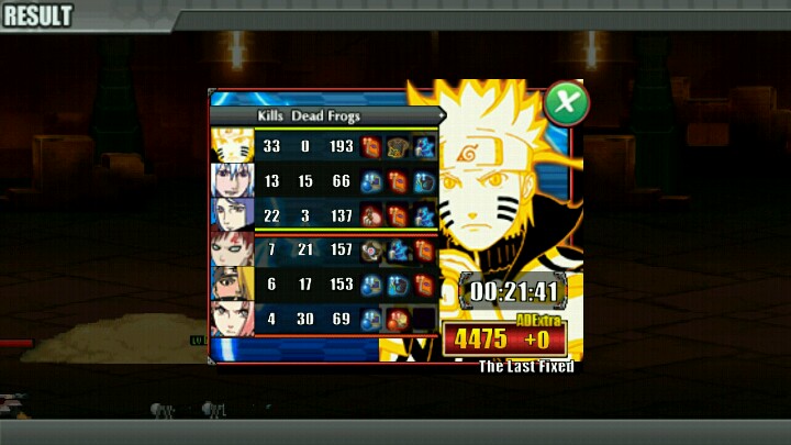 我玩的鸣人也有点菜了,只是死的和杀的有点少希望大家谅解。