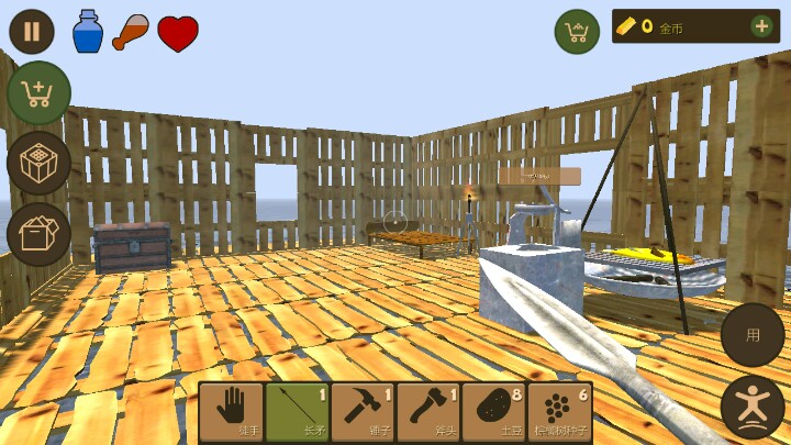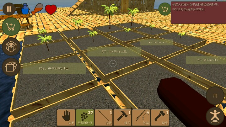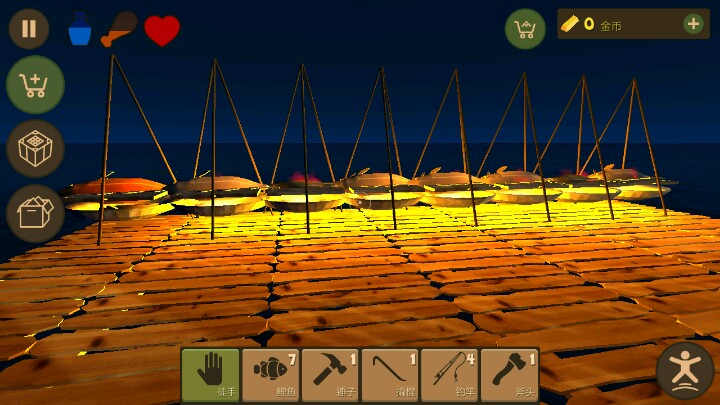 玩了一个通宵玩的差不多了!开局一直收集东西,刚开始的木板横着建20+多留个位置建房子,其余全部加上收集资源框,一天的资源可谓是非常丰富,接下来就是建房子,当然建房子需要大量的木板别着急先多种树,然后一直砍树!一个鱼竿就够了无限钓鱼,两条鱼直接吃饱,一个马克杯就够了,两杯喝饱,接下来就是看你要干什么了。