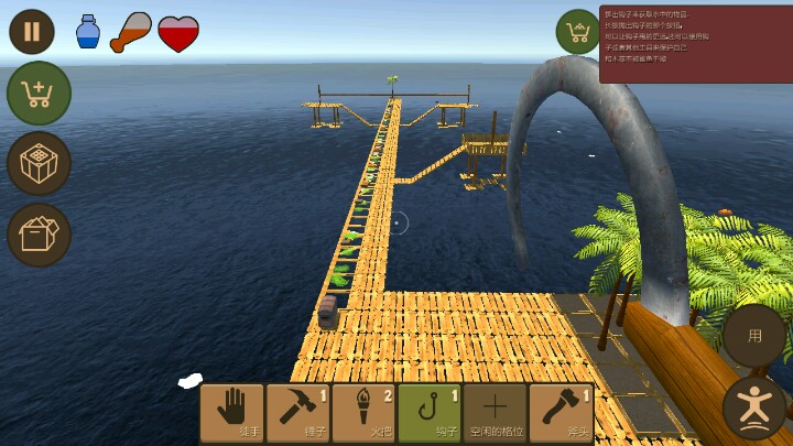玩了一个通宵玩的差不多了!开局一直收集东西,刚开始的木板横着建20+多留个位置建房子,其余全部加上收集资源框,一天的资源可谓是非常丰富,接下来就是建房子,当然建房子需要大量的木板别着急先多种树,然后一直砍树!一个鱼竿就够了无限钓鱼,两条鱼直接吃饱,一个马克杯就够了,两杯喝饱,接下来就是看你要干什么了。