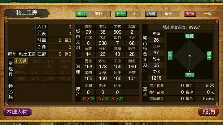 楼楼刚买这个游戏两天,随便玩了玩感觉这个游戏借鉴不少的游戏,例如三国志。由于游戏里士兵不用训练导致这个游戏玩起来有点像文明时代(一说到文明时代,小编你当时玩文明时代心情怎样~\(≧▽≦)/~),优化方面做的不太好,回合结算太慢,很考验你机子的文字编排能力,有木有? 首先发展壮大得要钱,游戏刚开始时很多人以为钱不用自己动手就来的,搞得楼楼以为像三国志那样,开始就狂升商业提升赋税,然而并没有什么卵用,最后被打成狗( •̥́ ˍ •̀ू ),要怎么做呢,刚开始除了赋税是自动的,还有如图1,每个月的下旬电脑会自动跑商一次,注意这里是大城,还有小县城,矿区,林区,田地,盐田等等得靠你自己派人去手动跑商,跑商时要注意组成商队的钱!收购价x士兵=组成商队经费,虽然有点累,但是利润大!不过人手不够,而且能不能交给电脑管?为啥我跑一次商后,莫名其妙产能降低而且不产出特产了눈_눈 剩下的交给大家慢慢探索≧∇≦