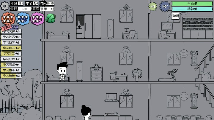 我昨晚从十二点玩到五点多,玩到设计组设计到的地方,虽然可能有点小瑕疵,但是很好玩,期待完整版,第一次玩的人记得点设置把视角调到最大,否则可能会错过某些剧情,比如学习文字什么的,每次属性加的比较慢还有各种任务的进展也比较慢,不注意时间会错过学校上学时间(因为上的希望小学,明明家里有钱=_=),不管是学校的课,还是艺术兴趣班的课,没有任何提醒,也不知道什么时候去上课什么时候就结束了,还有兴趣班时间特别短。。。很容易就错过了,就浪费了,还有背包空间也不够,还不能增加背包空间,东西会放不下,顺便还有剧情发展太慢,那个家庭问题(我那个刚好似乎是出轨什么的)很早就出现了,但是到12岁还没有结果,之前有过细节,但是没有再加述,让我很懵逼,先以上,这是一次体验的结果,还有问题也会再来建议