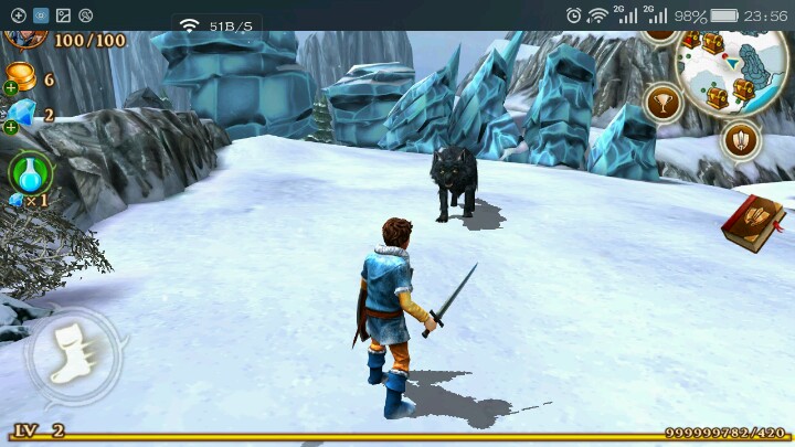 这个游戏的战斗模式和大名鼎鼎的《无尽之剑》、《血之荣耀》类似,都是站桩战斗模式。不同于《无尽之剑》站桩走剧情的模式,也不同于《风暴之刃》的站桩+跑酷模式,这个游戏还是一款可以自由探索的第三人称自由视角的RPG游戏,游戏里可以自己找野兽挑战,还可以开宝箱;