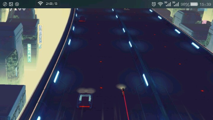 游戏画面挺炫酷,视角为鸟瞰视角,给人一种科幻大片的感觉。写一下怎么开始游戏以及一点心得:1,进入游戏主菜单后,点击:EXECUTE;2,选择EXECUTE下面显示的关卡;3,点击右侧出现的RUN按钮;4,选择控制方式,个人推荐左边的重力感应,右边的挑战性高供高手选择。游戏开始,需要左右移动躲避车辆,当敌方骑手追上来是可以向左或右发起攻击,试玩了一下,个人觉得还是挺有挑战性的。