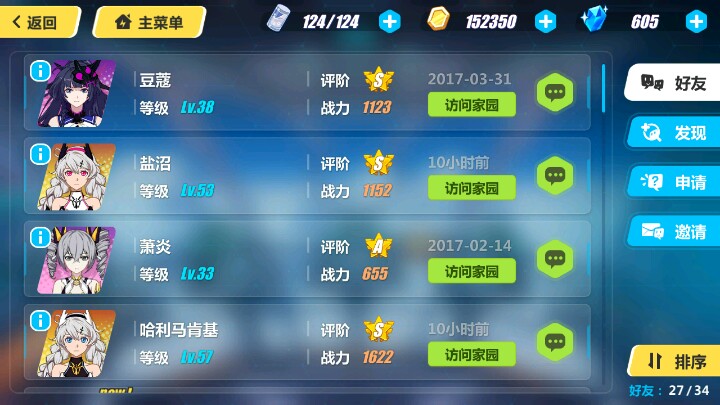 然后抽多几次标准,抽到两个a为止(好吧,s也行),然后抽精准,攒钻等武器up后十连,到了一定等级之后去刷困难,每个地图最后一关都会产出相应的角色碎片,我就是这样把初始御三家全刷上了a,当然,如果商店里出现金币买碎片一定要买,我的白练就是这样到a的,姬子只能去外传刷,开了外传后快速拿到战场疾风,本人在三十级前把战场刷上了a,战场疾风不要升,没用,除非你有四星武器魔龙之脊,主要是用来刷冒险,前期很缺崩坏兽拳套,前中期很内中飞机机翼,中期缺内中在第三关才能产出的蓝色的东西,后期缺崩坏结晶,和各种四星材料,一定要优先升家园的金币产出厂,后期升一次技能就要过万金币。