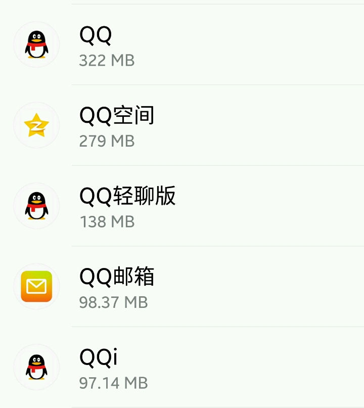 首先声明QQ------------安装两天。QQ轻聊版-----安装用了两年了QQi-----------QQ国际版,用了一天推荐大家用国际版,国际版本很小而且还有语音通话的功能,轻聊版小是小,但是没有语音通话的功能。上图自己看。