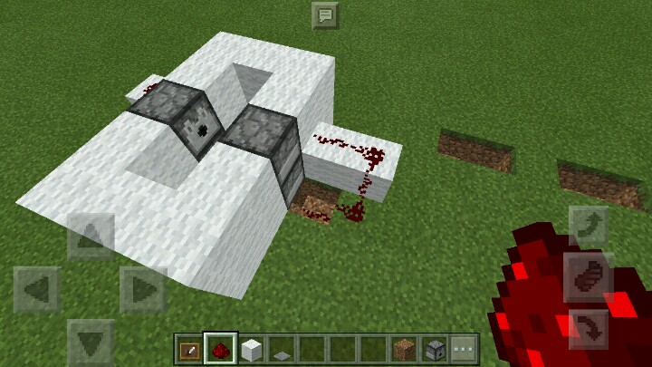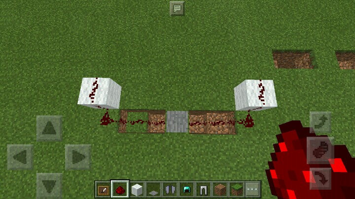 然后,照下图那样用红石连起来,注意中间那格下面也放了红石!