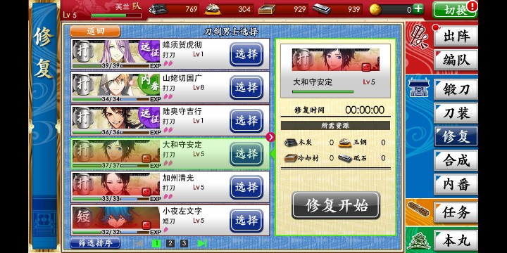 鹤丸国永好像5665也可以出的,不过all350概率太低了,我的一期莺丸两把太郎次郎太刀都是5665出的,还是挺有用的
