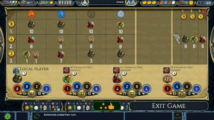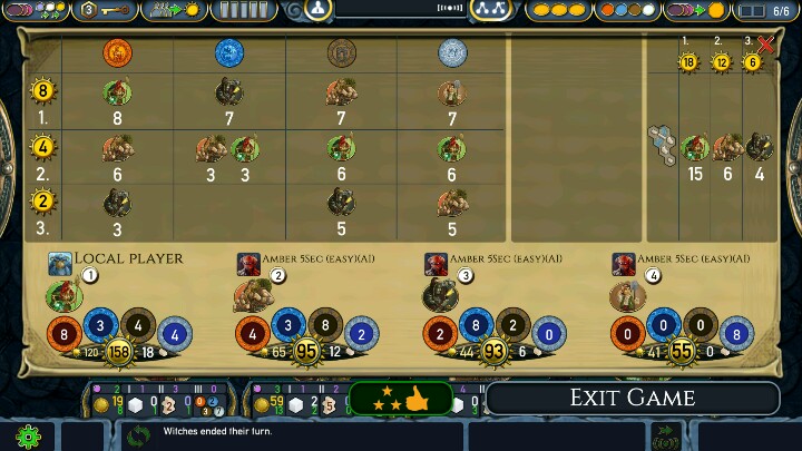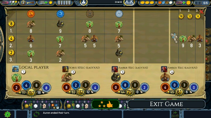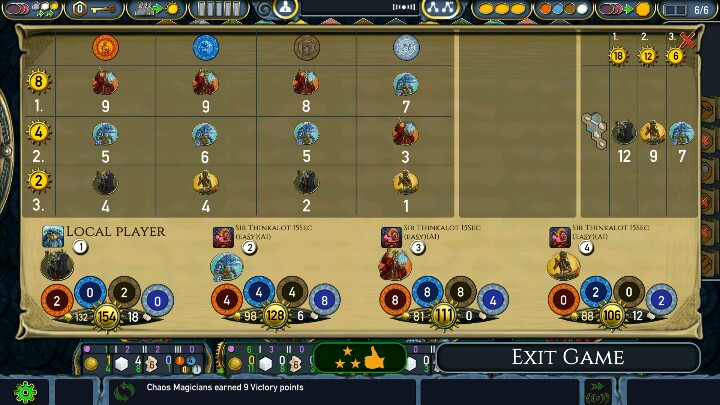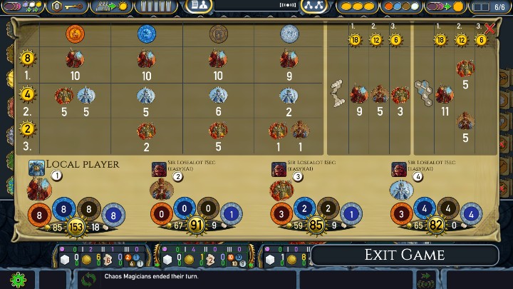魔力在「任何时候」可以按照官方比例转为其他资源,比例见图2,1魔=1金,3魔=1工人等,但这是很亏的!如果III盘的魔力不够,可以爆掉一个II盘的魔力,再移动一个II盘魔力到III盘中,比如图2,我只有一个3级魔力,但我急需3魔换工人怎么办?爆2移2,形成7个2级和3个3级魔法,这样就可以使用了。爆魔力会永久减少你的魔力上限,但一定程度上加快了魔力流转,大家斟酌使用。