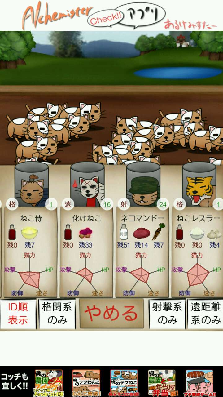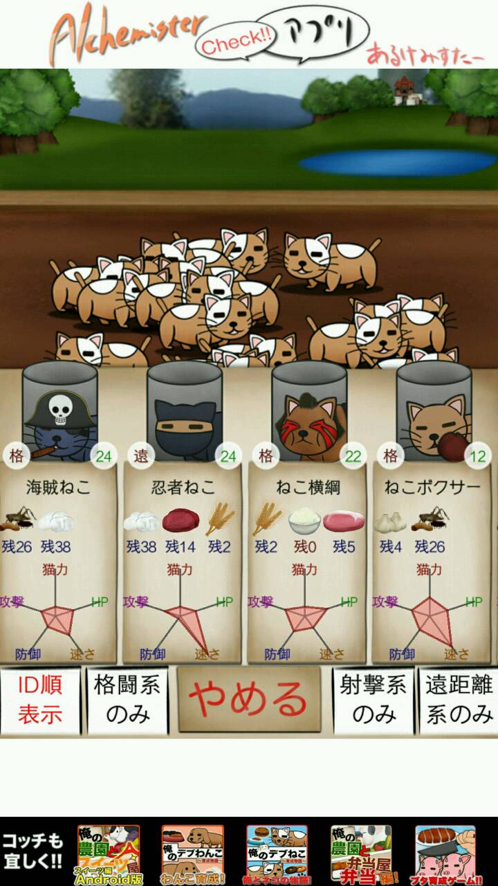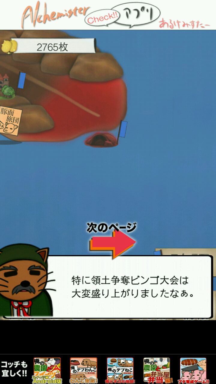 算是谋略和烹饪合体的小游戏,难度很低。故事大概意思是,猫咪的国家被犬的国家占领了,所以玩家要按照烹饪创造出新的士兵,和犬的帝国战斗,抢回领土。虽然是全日语的,但是难度并不大。