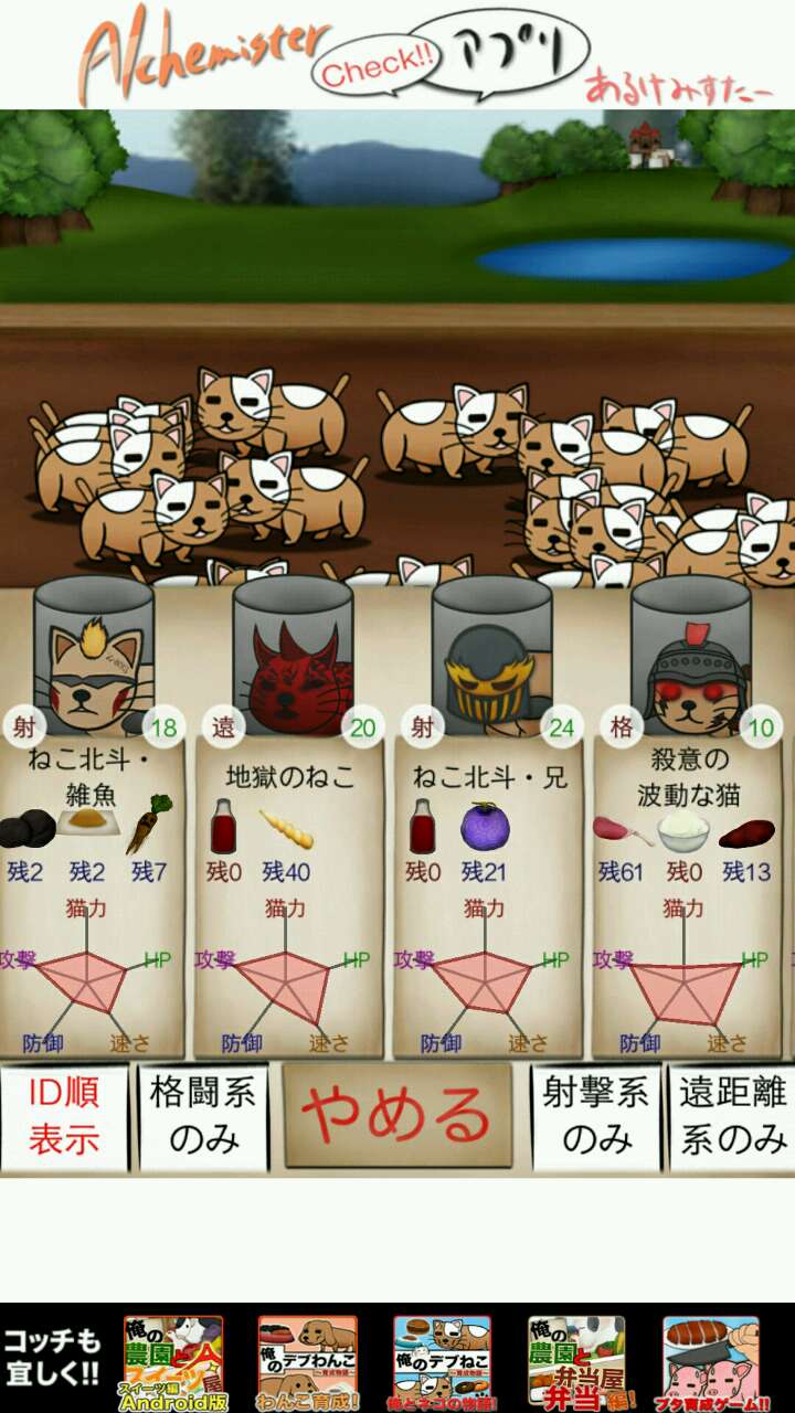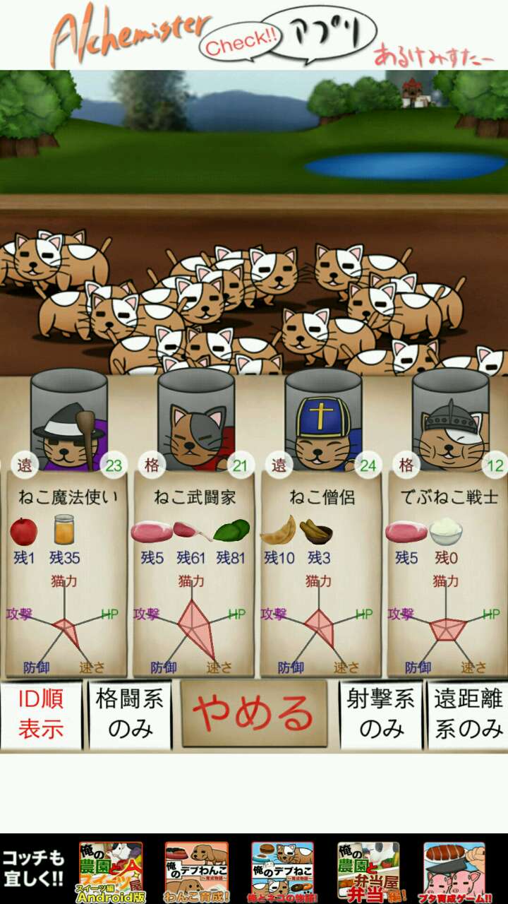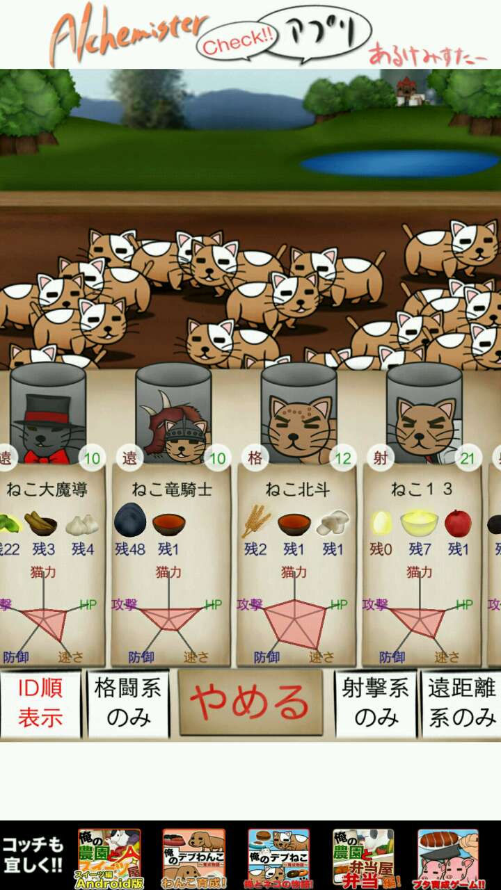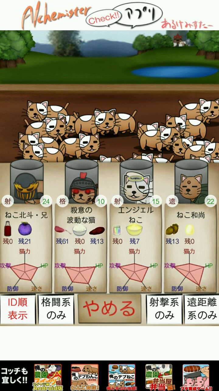 算是谋略和烹饪合体的小游戏,难度很低。故事大概意思是,猫咪的国家被犬的国家占领了,所以玩家要按照烹饪创造出新的士兵,和犬的帝国战斗,抢回领土。虽然是全日语的,但是难度并不大。