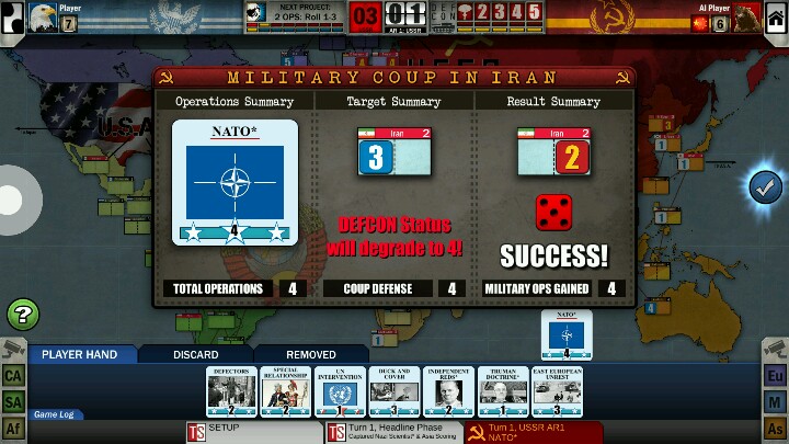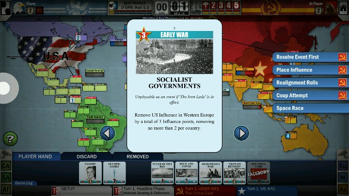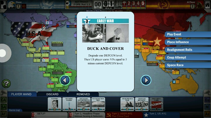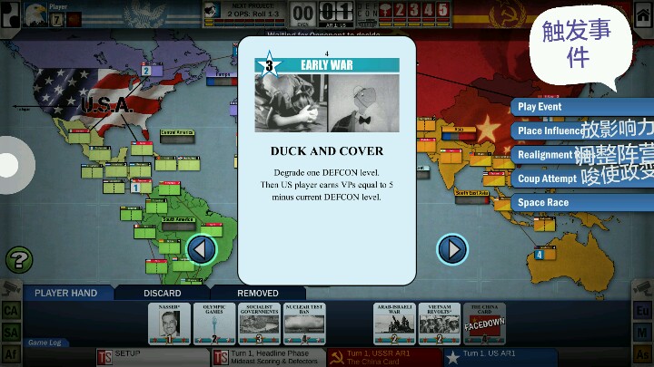 在上篇攻略中海星初步提到了冷战热斗的几个要素——核危机、军事行动、太空竞赛等。简单来说,冷战热斗就是利用卡牌和骰子玩的游戏,