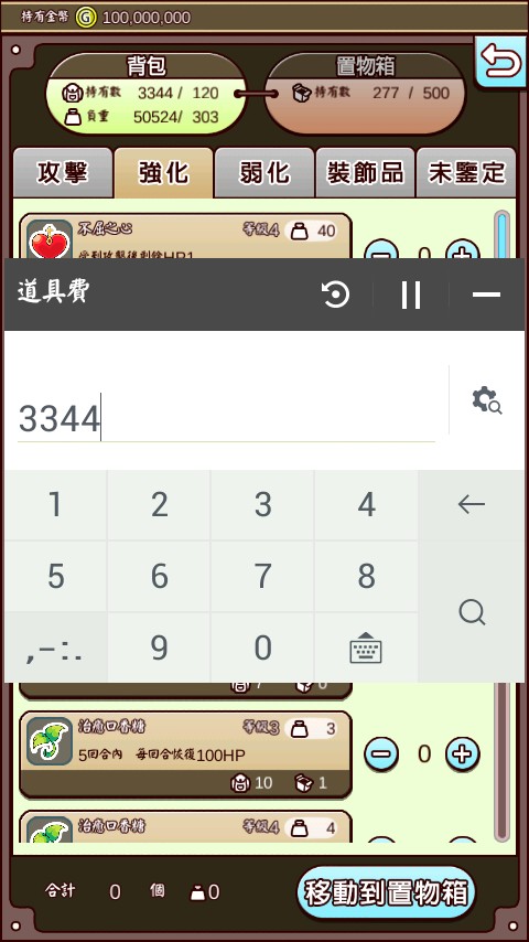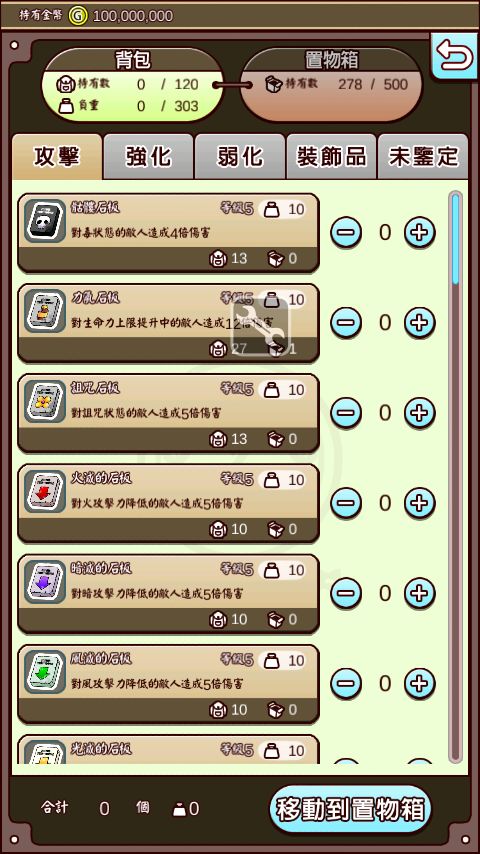 【道具】四类,攻击,强化,弱化,幸运物(呸~ ~有点忘了,应该是幸运物)