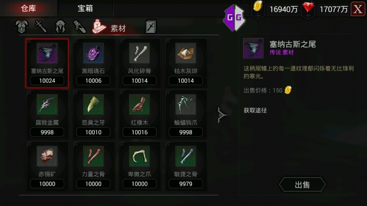 嗯。。最后一个武器材料 塞纳古斯之尾 应该是出自佣兵 夏娜的试炼