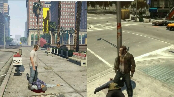 GTA系列的游戏不断的在进步,不管是画质还是剧情,GTA4画质给人眼前一亮,有了神一般的飞跃,但与GTA5相比,剧情要差很多。尽管圣安地列斯的画质不好,不如GTA4和5,但毕竟也是当年的经典(本人在这里推荐安装一个高清材质包。。)到现在为止,我觉得还是圣安地列斯最有爱了,毕竟这是经典嘛。。。(我这是第几次说“经典”了= =)