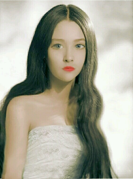 她的脸部是不对称的,你可以把两张照片重叠一下,可以看出来不同的