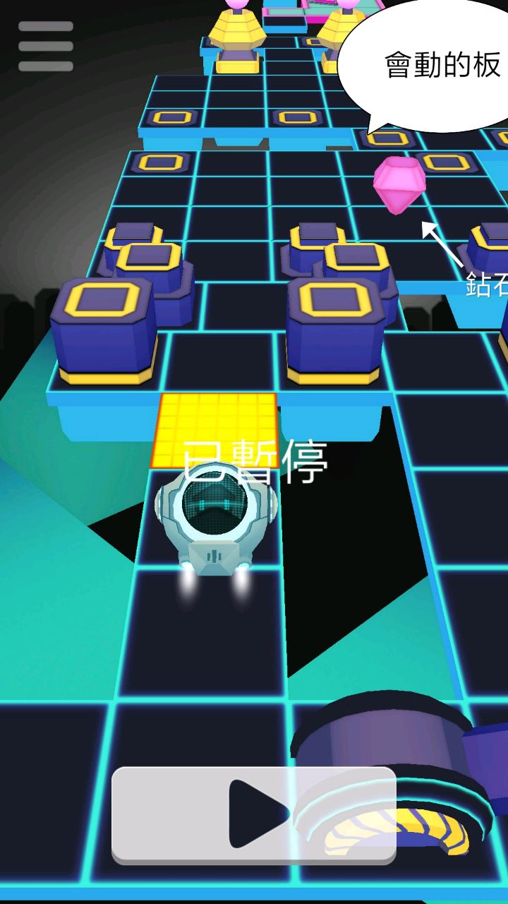 这款游戏其实不需要什么攻略,操作很简单,左右移动小球就可以了,一个关卡刚好一首好听的歌曲…—————————心脏不好请撤离—————————然而,我可以连续数十次存活不过过门!想要完整听完一首歌是多么的困难,因为游戏中搞死你的方式太多太多。好容易截了一张元素比较多的图,给大家分享一下。首先,球球会一直往前走,你的任务就是左右移动避免障碍。如图所示,障碍有好几种,常见的有突然从地面冒出来的柱子,不断原地转圈的锤子,踩了才有路的三角形机关,以及图上没有的发射光柱的炮台等等,前方的路都在不停变化,一个不小心,就会撞死摔死砸死轰死各种死…其次,游戏中有固定地点会刷出钻石,我没尝试过收集所有钻石会怎么样,但是钻石有个重要的用途是>——指路!前方处处存在危险,但是钻石所在地一定是安全的!这样,也许能多活一会儿…最后,说说这个版本,这个版本是无限生命(此处吐槽没有无限生命真没法玩),但是不是无限的盾牌。盾牌的作用是抵消一次除摔死外的死法,个人不建议用,毕竟一命通关的感觉最好不是吗?