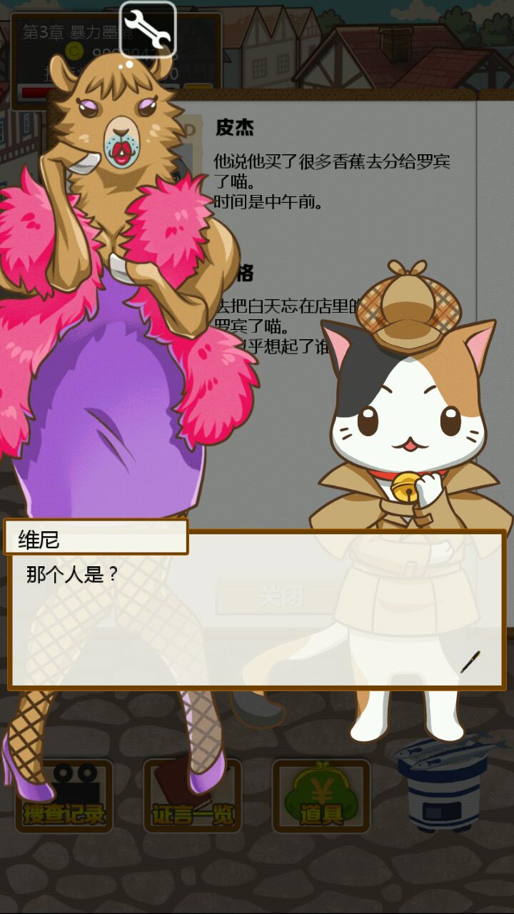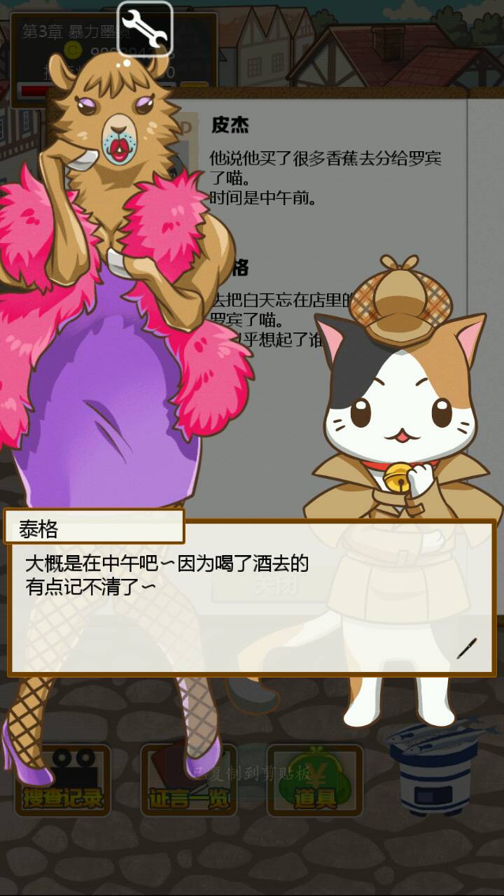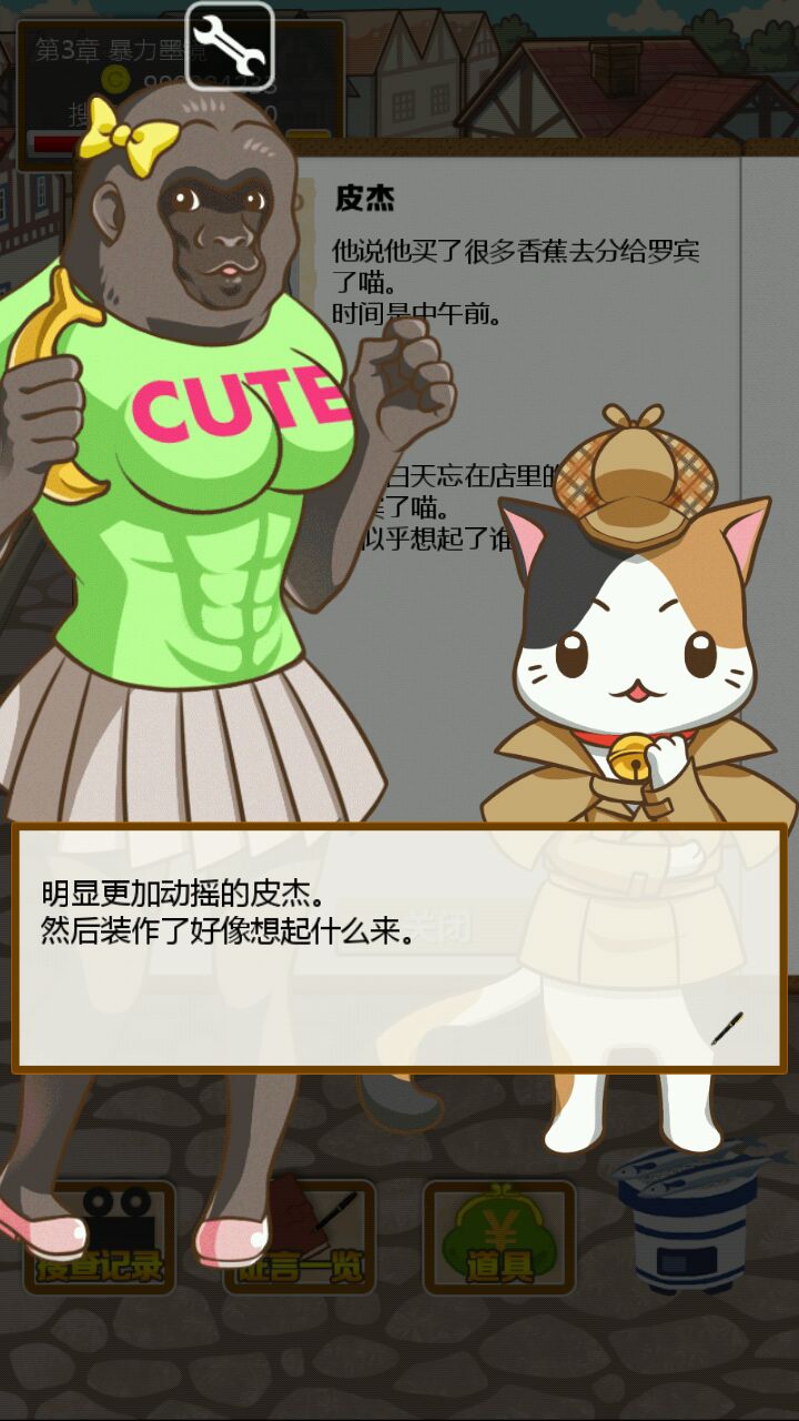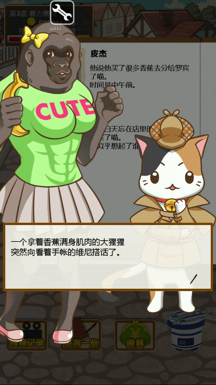 首先我们的小猫维尼想吃蜂蜜可是回到家却发现主人躺在血泊中!为了抓出杀害主人的凶手,我们的小猫维尼化身福尔摩斯喵励志开启了他的寻凶取证之旅( ̄∇ ̄)首先取证现场看起来有不少疑点,主人临终写下的宝贵信息暗示着瑞比狼小姐可能是凶手,尸体旁边掉着鹿毛,窗户上有着驴踢印,地毯上有香蕉皮,金库是没有动过的这也证明了要抓凶手真的很困难,orz=皿=,(而且我指证狼小姐是凶手结果错了)重新来了一遍=皿=