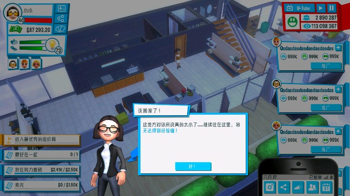 另外提醒下,游戏中会出现各种两项选择的突发事件,要看清楚了在选择,不然选错会掉订阅度的。