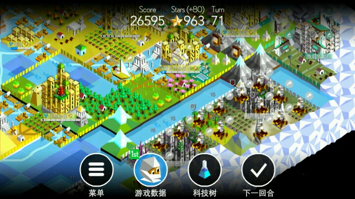 我记得当初玩竞技的时候走得是海洋流,许多前期的能力全靠别的种族给予,再加上地理位置特殊,很快就扫荡全图,最后还剩下三个回合的时候地图基本都探玩了,还有一小部分是因为有投石车占领山谷,一时攻不下来,后来才发现那一块差不多7x7的云雾中夹杂着两个种族,而且科技也同样十分发达,最后一个回合终于打到对方老家,对方出来个巨人直接被秒,再给我两个回合就一定可以占领全图