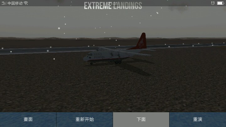 我们都知道,极限着陆里是无法在机场外和机场内跑道以外的地方迫降,但是只要你技术好,还是可以的,首先,你得对准机场内跑到以外的地方(注意不要对准房子,迫降地方要有足够距离),以140到130迈的速度降落,注意,不要速度低过度用减速板,它会使你的飞机垂直下降,另外,你要尽可能用最低的高度靠进迫降点,然后用减速板和关闭引擎动力,然后降落。不要用襟翼,它的负作用和减速板一样,还会使你的飞机减速过快。另外,我只成功过如图飞机