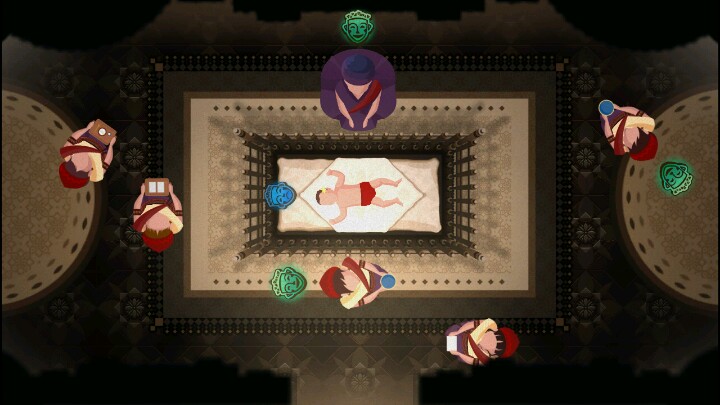 玩法类似给婴儿想要的东西(侍女手上拿的),先点婴儿,再随便点一个侍女,等两方头上的表情全部变绿色,侍女会走到婴儿床旁,算完成,直到所有侍女点完