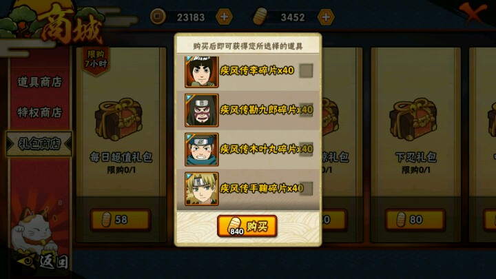 相信我忍者礼包都没什么用,不如攒金币交下个高招A首付。