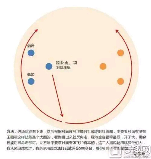 前排:庄周后排:甄姬 貂蝉庄周有3次解控减伤的技能,跑得还快,基本能抗住对面,然后风筝10秒左右。并且能免疫宫本从天而降的大招,王昭君的二技能也能克制。进场后往右下走,然后根据对面阵型往顺时针或者逆时针转圈,主要看对面有没有王昭君这样技能是范围伤害的,看到有圈就往反向走。