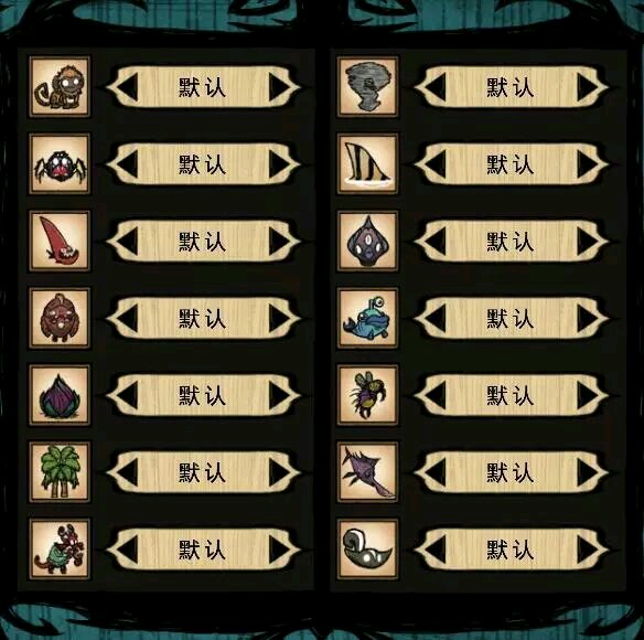 【毒】是否开启毒的设定。毒是船难版本的新设定,头三天中毒基本完蛋,船难版本中黄蜘蛛有毒,被中毒的生物攻击也会中毒(传染性),要用抗毒血清解毒(生存栏解锁)。