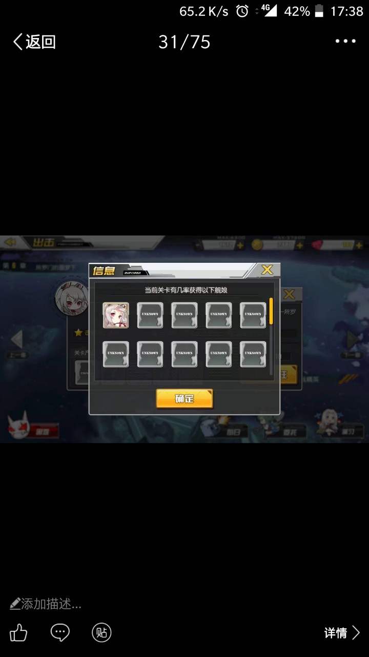 最后一个则是摩耶,这里被和谐为犮(这个字我也不知道读什么,我百度过了,有两种读法,一种是ba,一种是quan),新船,于8-4打捞,打捞难度极高,需要极高练度,由于目前刚刚捞到,暂未测试性能,不予评价