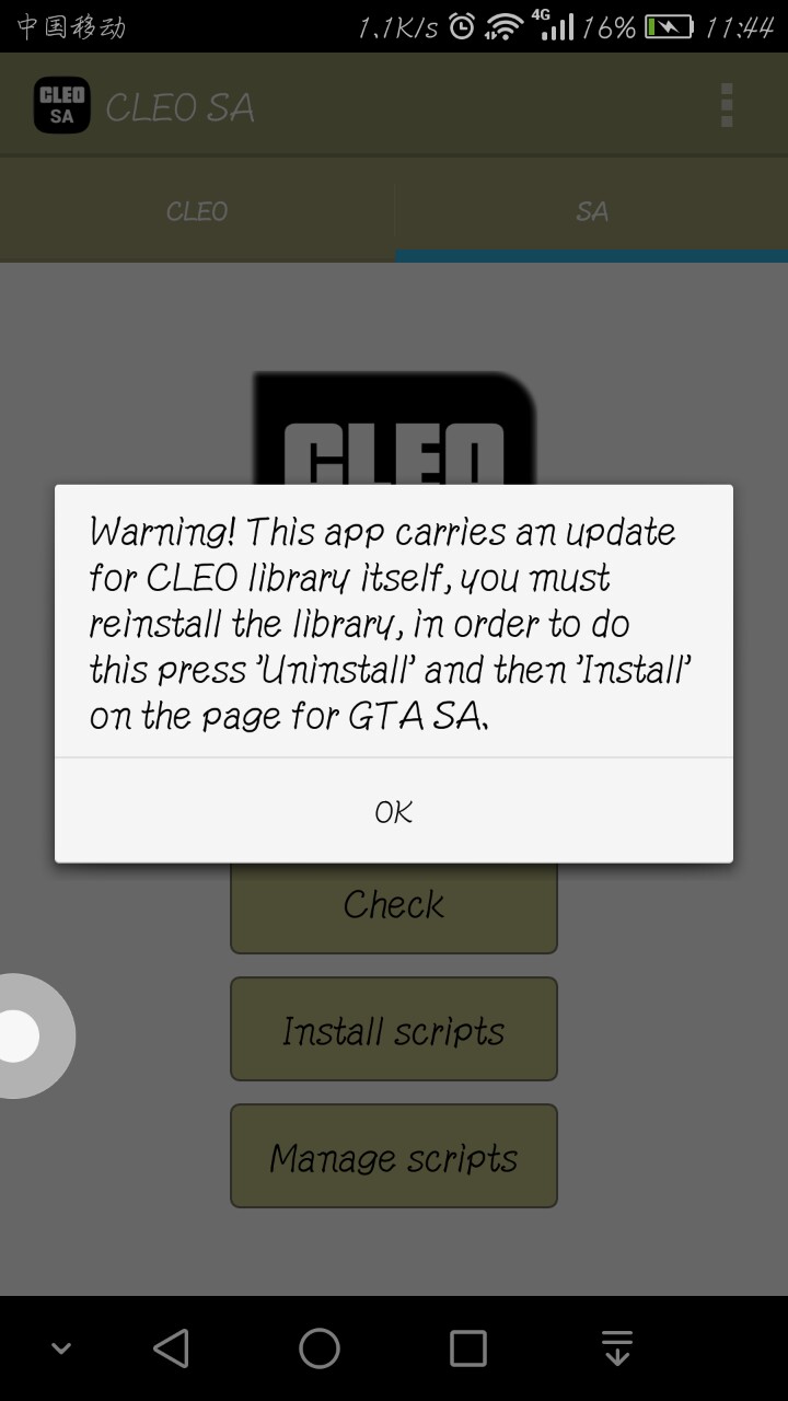 6.下载后进去,点击右边的SA,进去第三行的Install scripts,然后点一下CHEATS,再点击Install