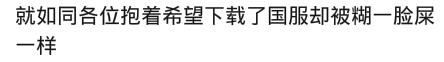 就如同各位抱着希望下载了国服却被糊一脸屎一样