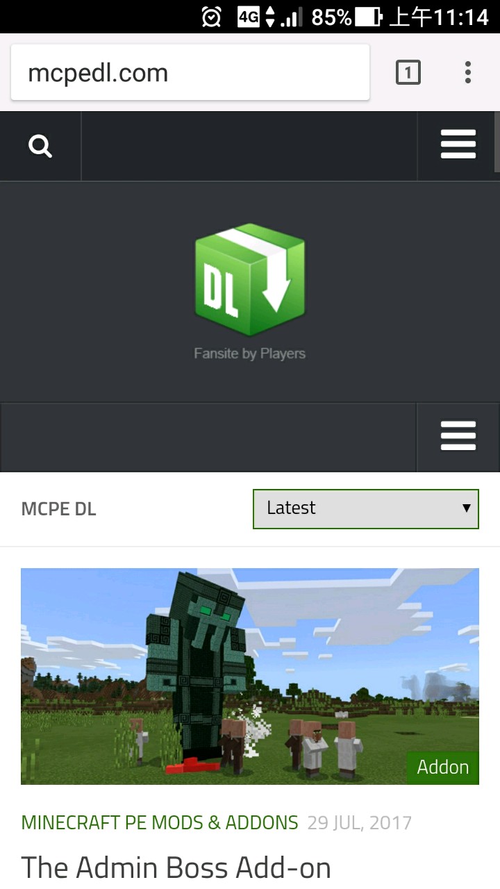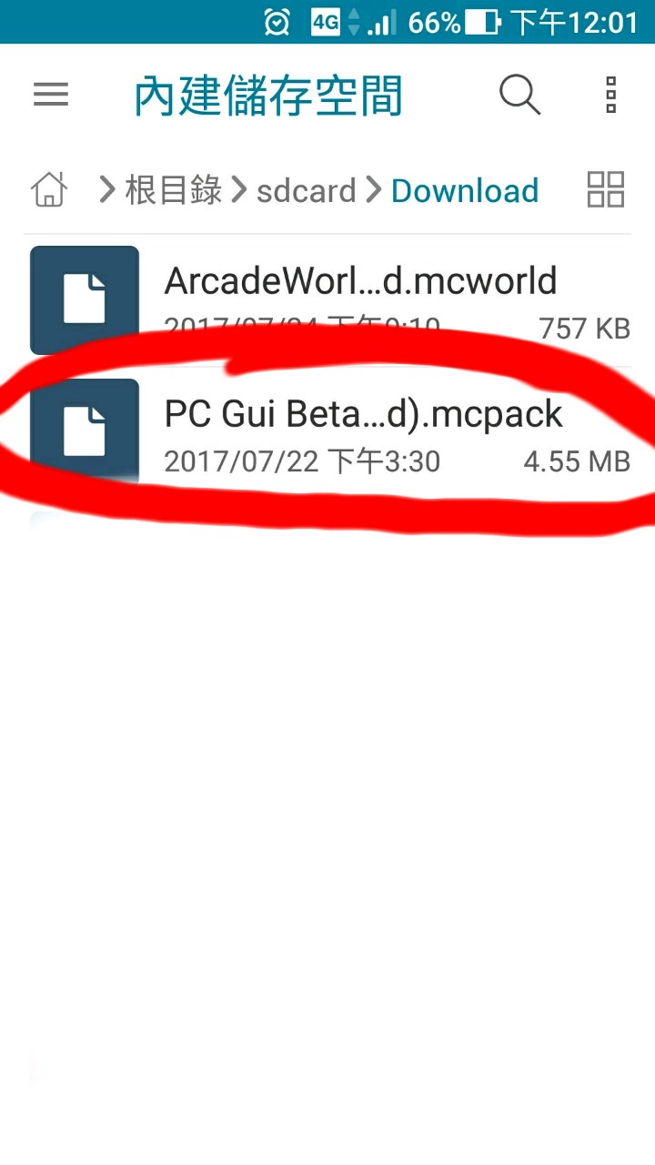 去查mcpe,首頁在下圖,用好後去首頁的左上角有一個搜尋鈕,按下後查尋pc找到PC GUI Pack按下,滑到最下面有一個Download按下下載