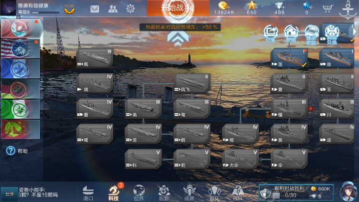 3.很多人喷它就是个中国游戏,你看看这界面吧,什么雷霆海战,根本不值得一提!游戏不用充钱,游戏没有RMB战舰和武器,金币是用莱换钱和经验研发战舰的。