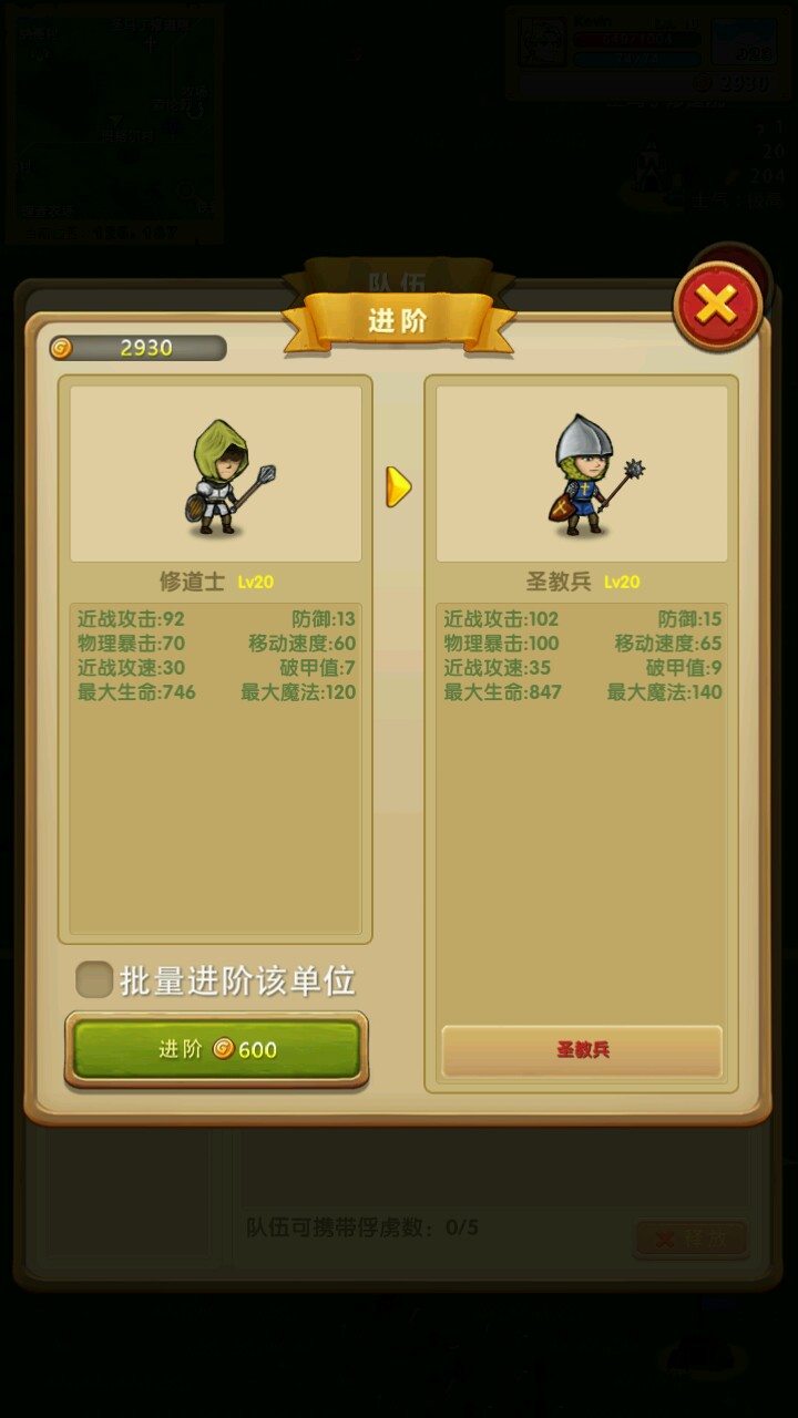 6.手下的将随便招兵,主角的兵配:6牧师+14射将