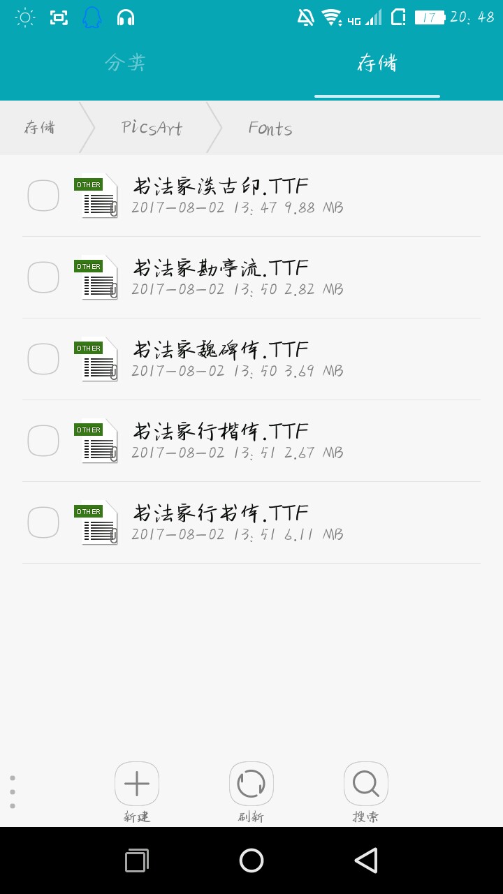 3.复制字体到picsart文件夹的fonts文件夹