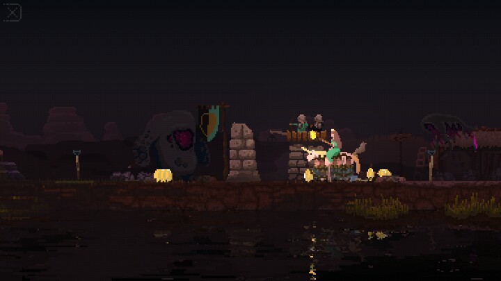 玩法:作为国君,你不需要一切亲力亲为,你只要作好决定给钱,让下人去办就行了。走到建筑或特定的人旁边,如果上面出现几圆,那就要几个钱去支付。你的目标就是把船修好后逃离这岛。这个岛上有些怪物,它们觊觎你的王冠,千万不要让它们得逞!幸运的是你有一群忠心的部下,还有一匹健壮的骏马可以带你逃出险境或者在有限的白天做更多的事。