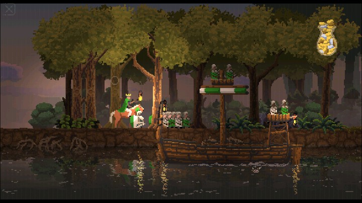 玩法:作为国君,你不需要一切亲力亲为,你只要作好决定给钱,让下人去办就行了。走到建筑或特定的人旁边,如果上面出现几圆,那就要几个钱去支付。你的目标就是把船修好后逃离这岛。这个岛上有些怪物,它们觊觎你的王冠,千万不要让它们得逞!幸运的是你有一群忠心的部下,还有一匹健壮的骏马可以带你逃出险境或者在有限的白天做更多的事。