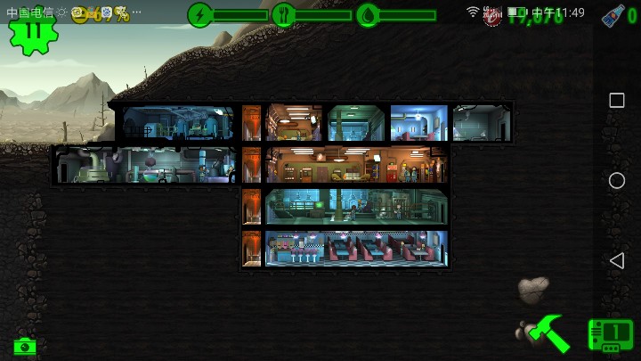 发电厂是最重要的,食物和水有三个三连房间就能一直用到你解锁公园(高级食物生产间)和水处理(高级水生产间)。然而电不一样,需要大量人力和生产间,否则没电就会生存间断电,然后同样会没有食物和水。所以电是必须要多建设。当然,建设顺序无所谓,反正尽力保持警戒线在总储存三分之一以下就行了。
