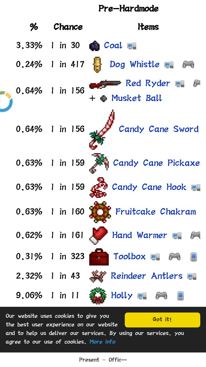 接着,振奋人心的时候到了!开礼物!一直开!圣诞礼物中有几率开出一把名叫德拉克斯的钻镐,这把稿子也可以从地狱的暗影宝箱中获得(有几率),或者在肉山后用神圣锭制造!